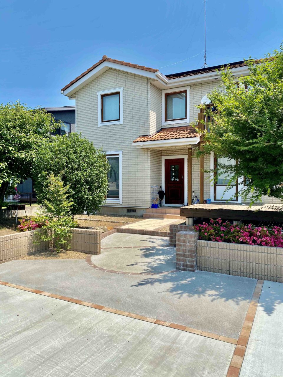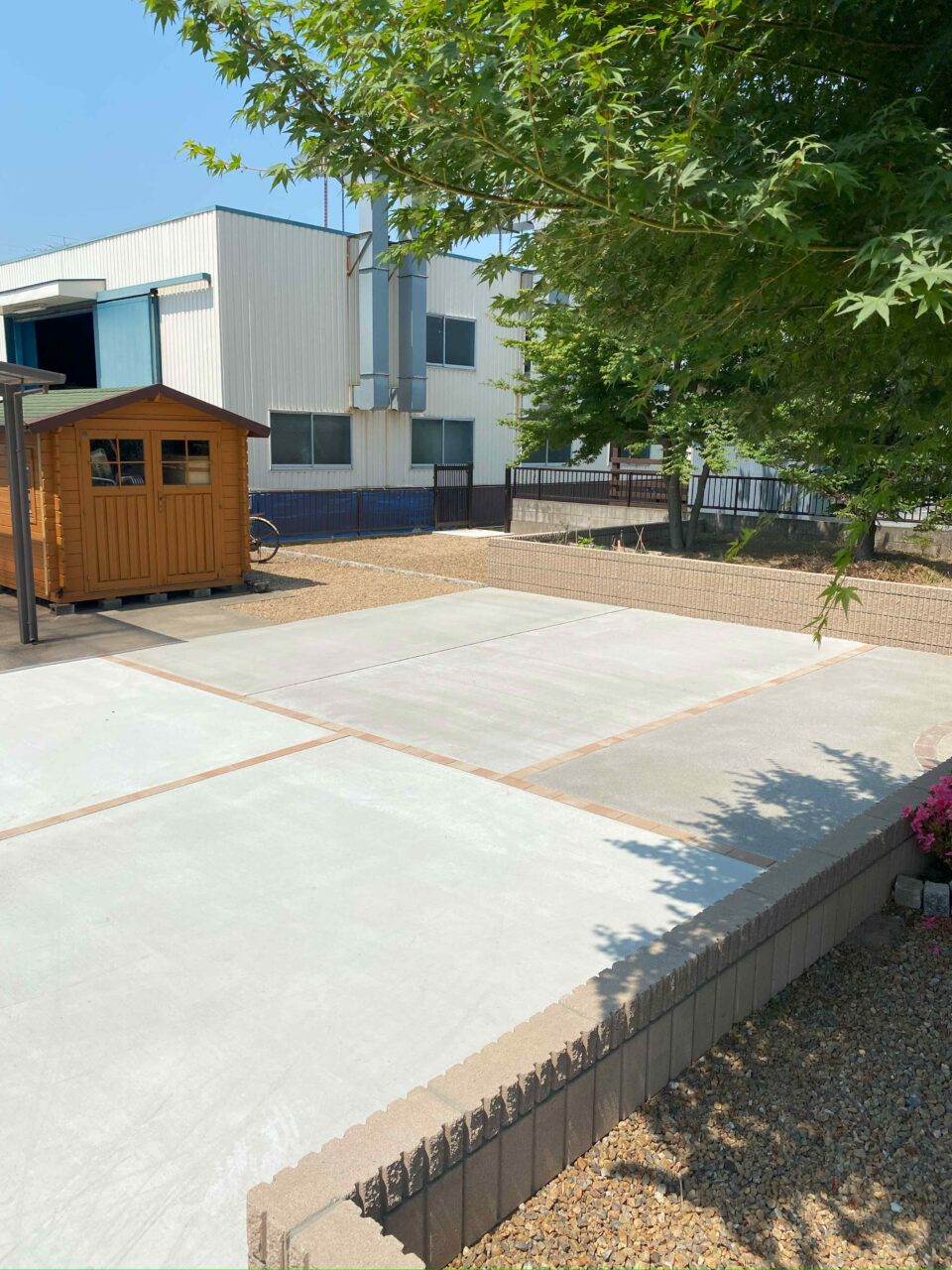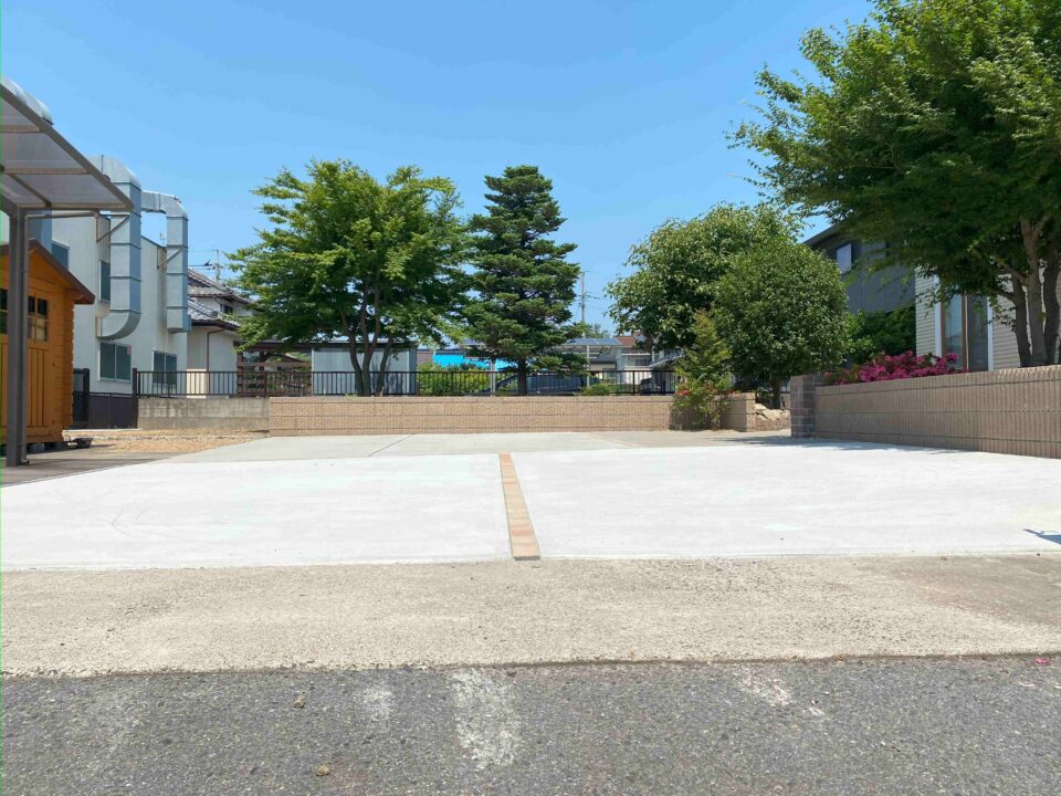 車の旋回範囲も考慮し、土留めの位置も設定しているので、駐車場の使い勝手も良い仕上がりになりました。